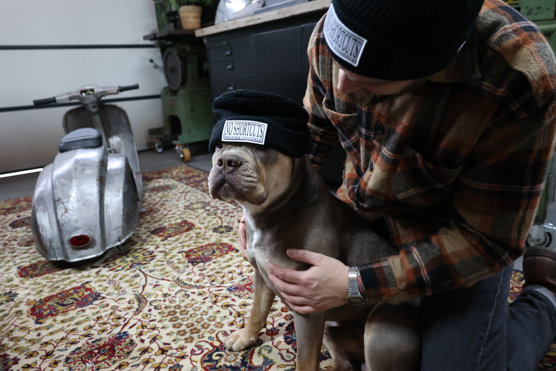 - Schriftzug “NO SHORTCUTS“ als Patch in Weiß