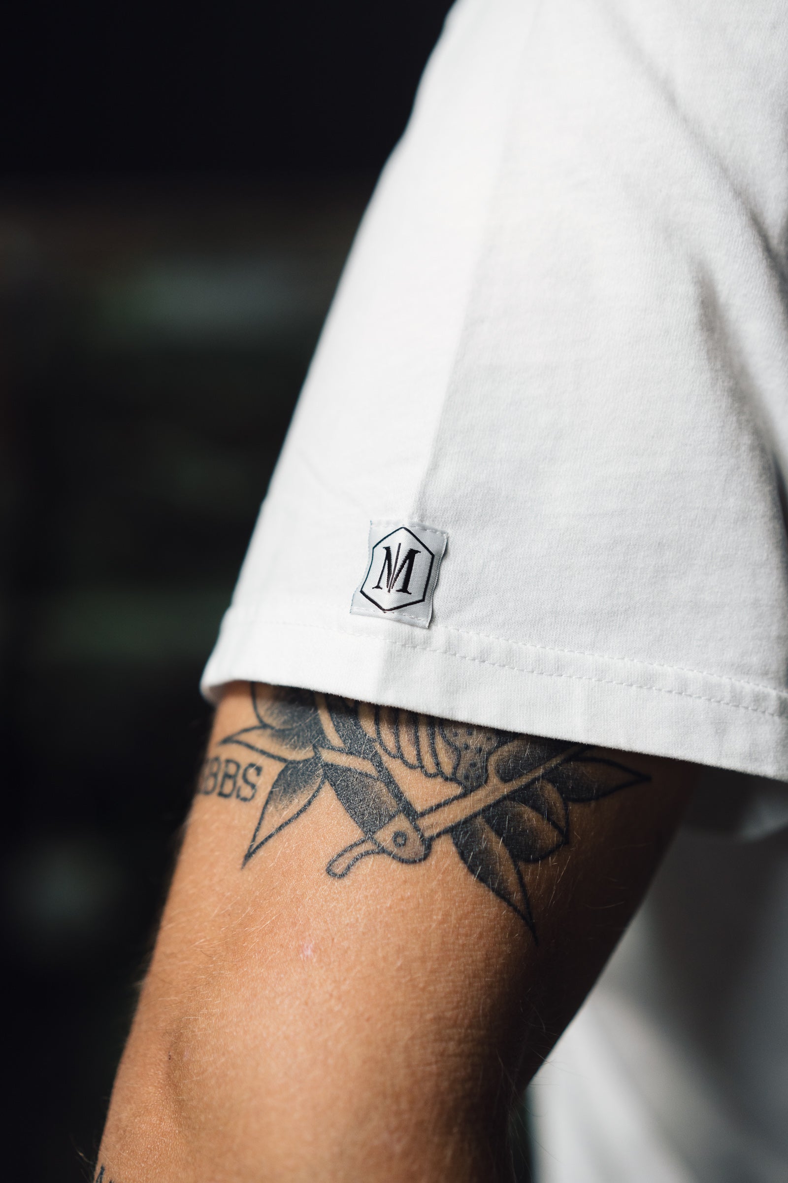 - Weblable "M/M" Hexagon am Linken Ärmel
